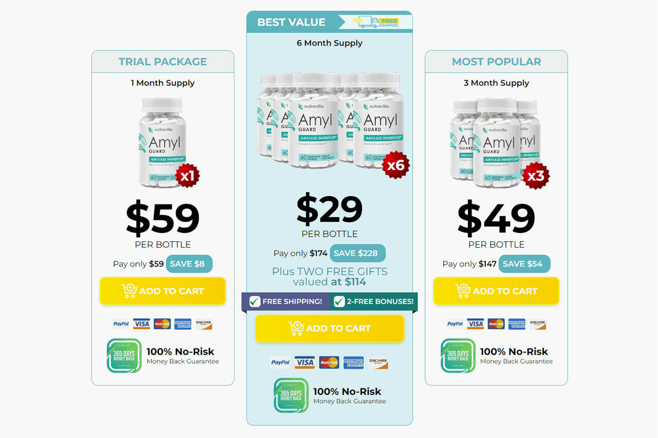 Amyl Guard is offered in several pricing packages, allowing customers to choose the option that best suits their needs and budget. Here’s a breakdown of the pricing details: