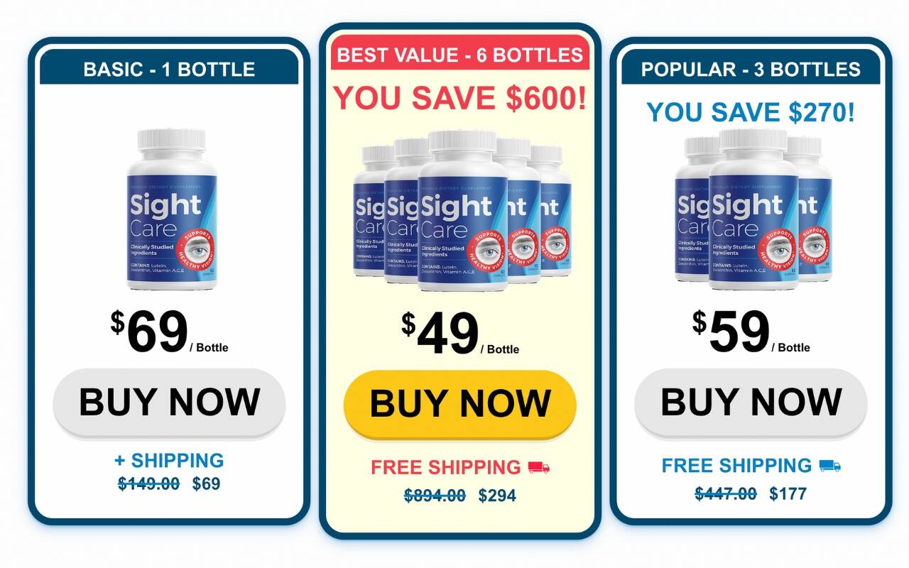 - 1 Bottle Option: Priced at $69 per bottle, this package is ideal for those looking to try SightCare for the first time. Additionally, there is a shipping fee associated with this option.