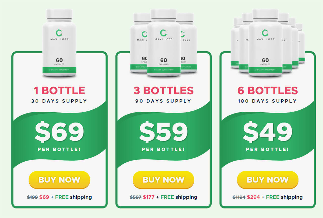 Maxi Loss costs $69 a bottle, but you can save money if you buy three or six bottles at once. On the official MaxiLoss website, the pricing is as follows: