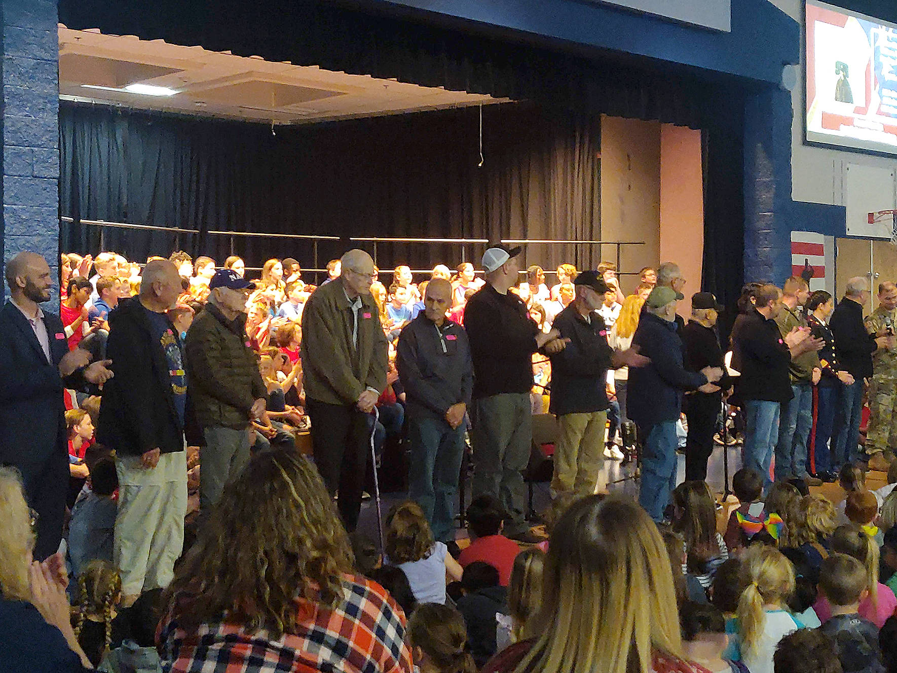 Fifth graders sang patriotic songs, military melodies and more before inviting local veterans up to the stage to introduce themselves, who they were invited by and to receive a rose in gratitude.