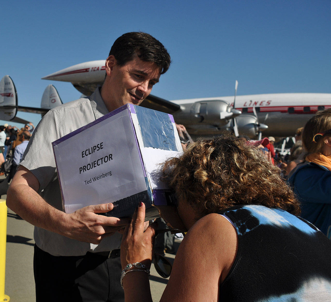 Weinberg’s projector was popular among people viewing the eclipse at the museum. He estimated about 70 people had viewed the eclipse through his projector around the time the eclipse reached its peak at about 10:20 a.m.