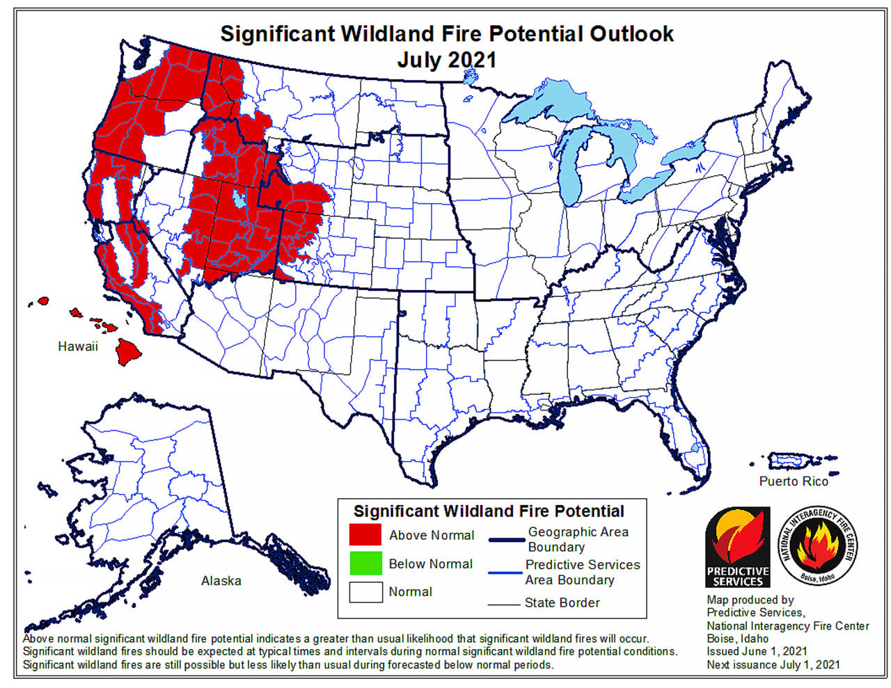 Map of July fire outlook for the West. (National Interagency Fire Center)