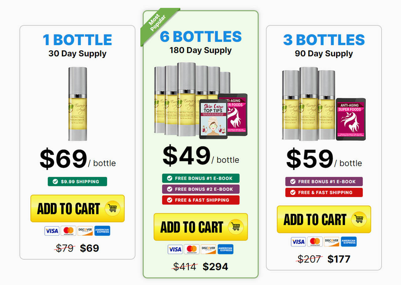 Essence of Argan is normally $79 per bottle. However, as part of a 2024 promotion, the manufacturer has reduced the price to $49 per bottle. Qualifying purchases include bonus eBooks, free shipping, and other perks.