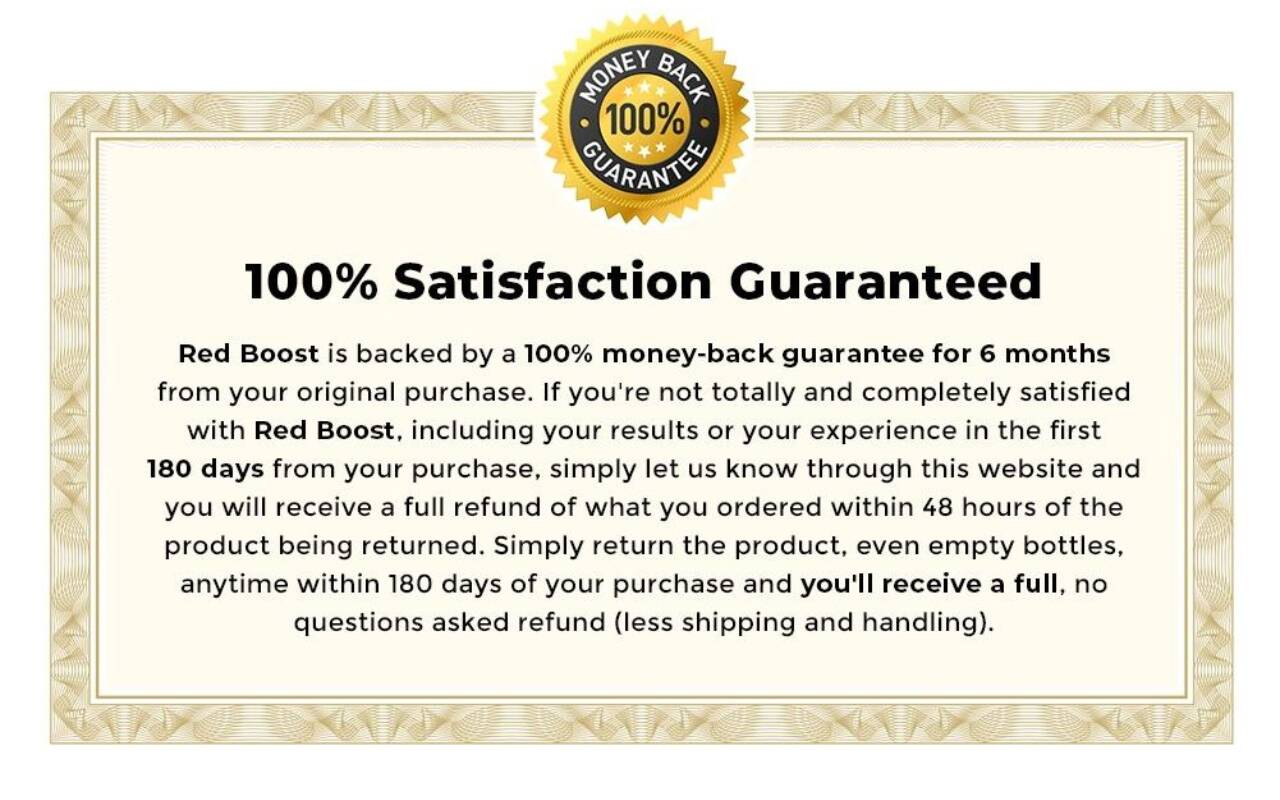 - Red Boost is made from potent natural ingredients, with a 180-day satisfaction guarantee.