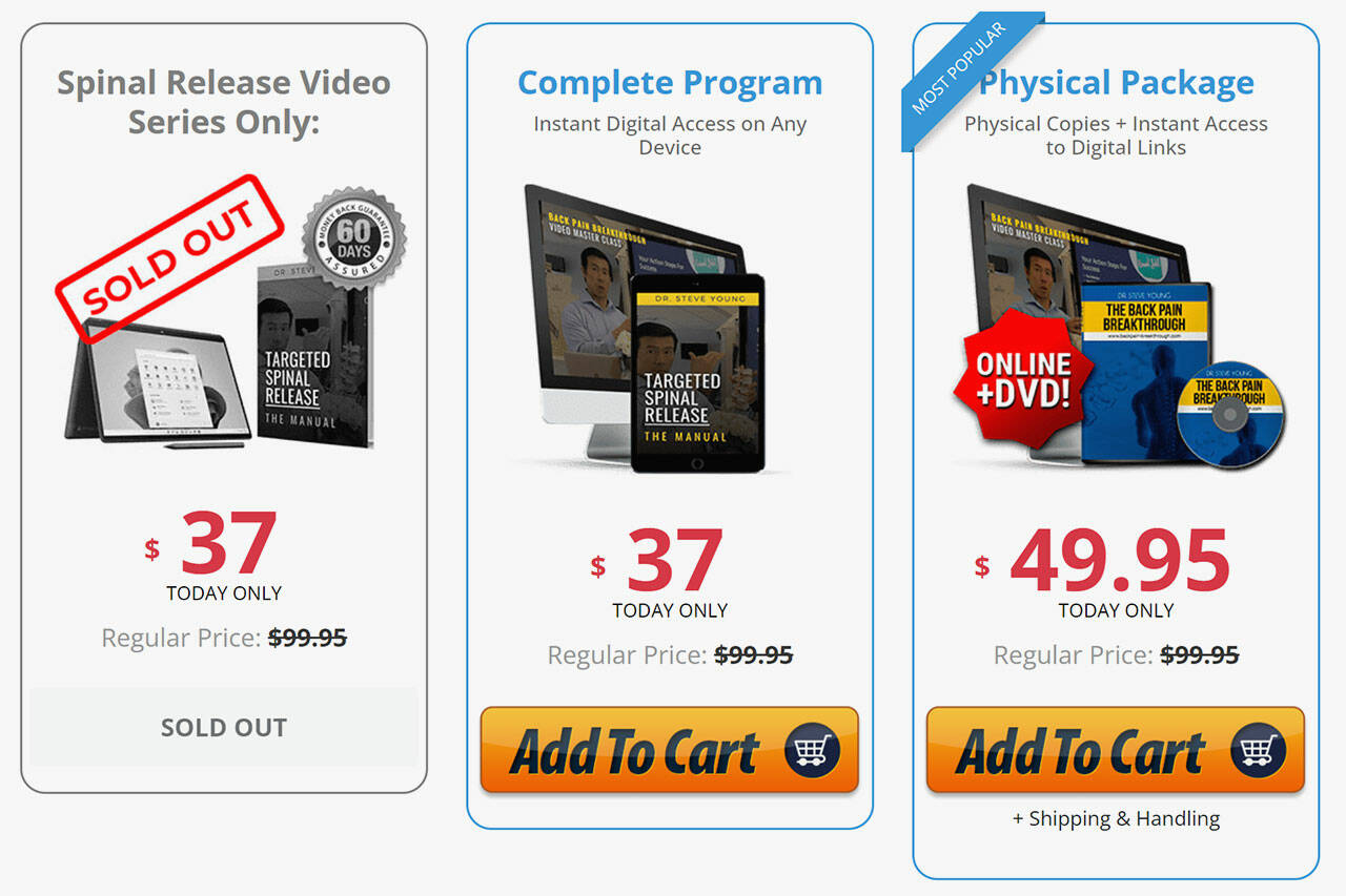 The Back Pain Breakthrough program can be purchased for $37 on the official website and includes two bonuses. You can easily download the digital program and enjoy it at your convenience from anywhere.