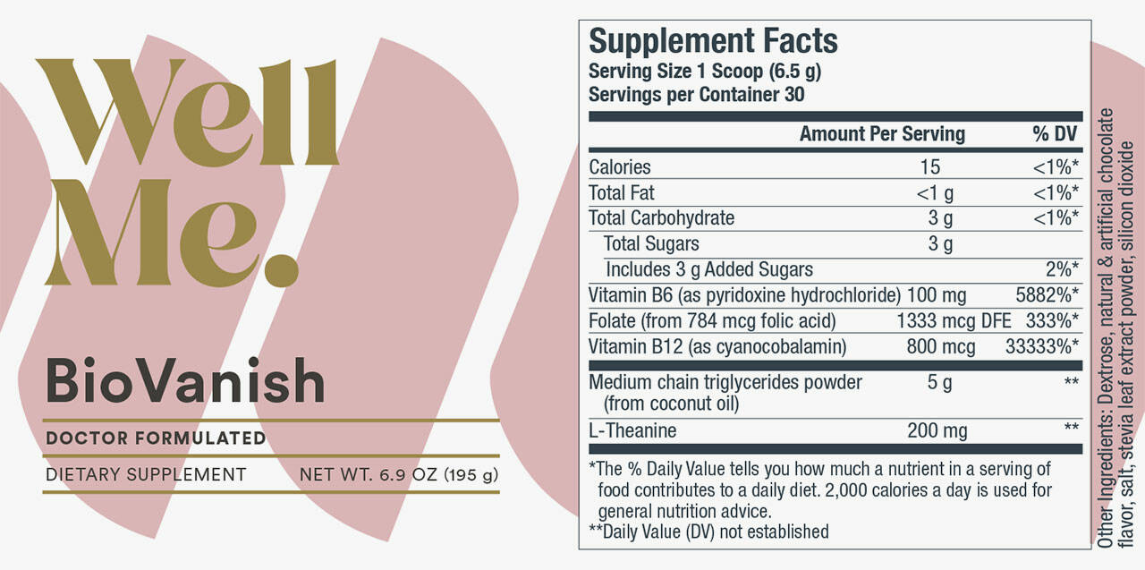 Primary Ingredients: Vitamin B6, Vitamin B12, Folate, MCT, L-Theanine